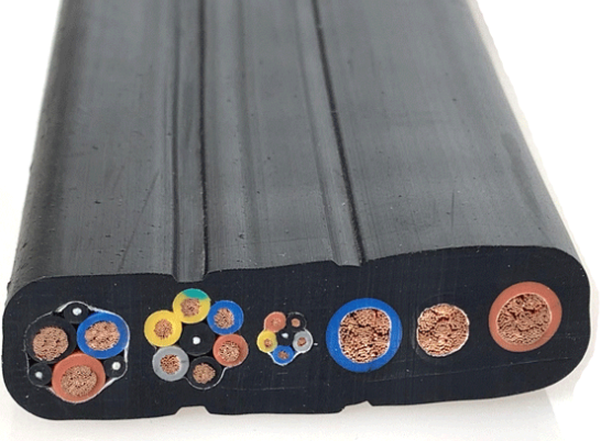 扁電纜YKVFBG14×2.5+2×2.5P+2×4適用于交流額定電壓450/750V及以下移動設(shè)備機(jī)上電器儀表連接線或信號傳輸,扁電纜兩邊加鋼絲承拉,可根據(jù)用戶需要在電纜設(shè)計中加入光纖作為通信之用,電纜具有阻燃耐熱、耐寒、防油、耐腐蝕、柔軟、耐磨、抗拉等特性,電纜廣泛用于冶金、電力、石油化工、礦山、船舶工業(yè)、港口及移動設(shè)備制造等行業(yè)。