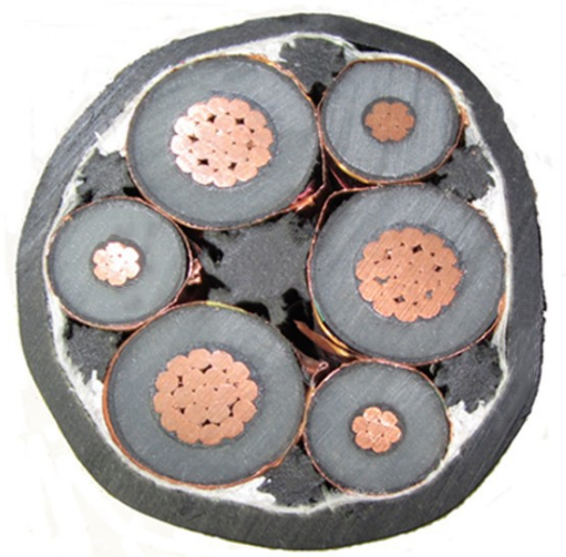 標(biāo)準(zhǔn)對稱電纜結(jié)構(gòu)設(shè)計,所以電纜芯數(shù)為3芯、3+1芯(其中一芯為同心導(dǎo)體結(jié)構(gòu))、3+3芯(3大3小結(jié)構(gòu))