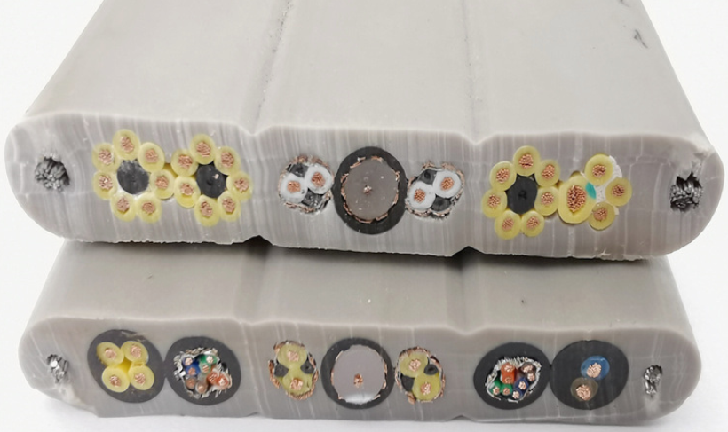 加鋼絲扁電纜YVFBG適用于交流額定電壓450/750V及以下移動設(shè)備機(jī)上電器儀表連接線或信號傳輸,扁電纜兩邊加鋼絲承拉,可根據(jù)用戶需要在電纜設(shè)計中加入光纖作為通信之用,電纜具有阻燃耐熱、耐寒、防油、耐腐蝕、柔軟、耐磨、抗拉等特性,電纜廣泛用于冶金、電力、石油化工、礦山、船舶工業(yè)、港口及移動設(shè)備制造等行業(yè)。