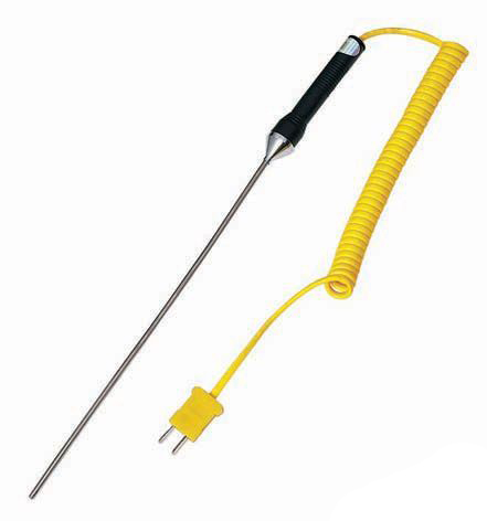 手柄式熱電偶WREK-181 WRNK-181又稱手持式熱電偶專供測(cè)量各種形狀的固體介質(zhì)的表面溫度以及測(cè)量液體、氣體的溫度。手柄式熱電偶使用范圍很廣,不受物體表面的形狀限制,外形輕巧,攜帶方便,由于手柄式熱電偶具有直徑小、可彎曲、抗震動(dòng)、熱響應(yīng)時(shí)間快和緊固耐用、可靠性高等優(yōu)點(diǎn),該產(chǎn)品與數(shù)字顯示儀配合使用可直接測(cè)量并顯示不同生產(chǎn)過程中0~1200℃范圍內(nèi)的各種介質(zhì)的溫度,被廣泛用于冶金、化工、紡織、印染、造紙、橡膠、塑料、陶瓷、糧倉(cāng)等工業(yè)部門、企業(yè)。